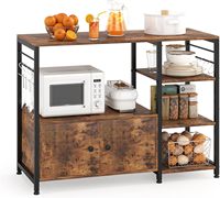 HuaShengキッチンコーヒーステーション、モダンなコーヒーバー、収納付き電子レンジスタンド、4層ユーティリティ収納棚、ブラウン